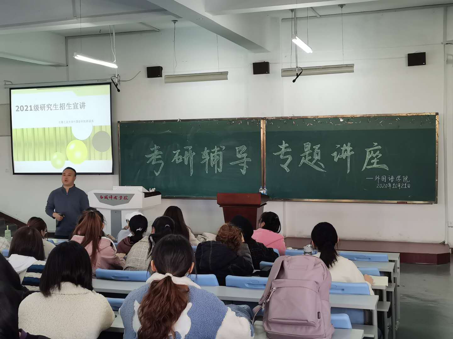 在提问交流环节,同学们踊跃发言提问,老师们一一解答,在一条条信息的不断传递中,本次研究生招生宣讲会圆满结束。此次宣讲会对该校同学们更好地了解公司的考研招生动态,提高自身的竞争力,加强自身学术建设以及做好职业生涯规划具有重要的意义。
