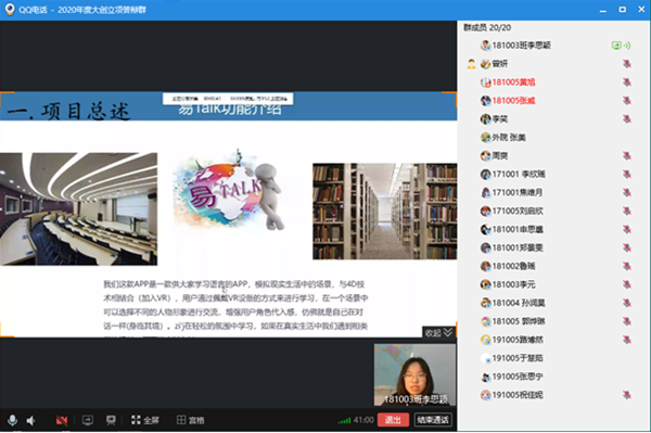 本次评审共有16个项目参加立项答辩。按照《关于开展2020年老员工创新创业训练计划项目立项评审工作通知》的要求,各项目组在指导教师指导下认真准备好项目申请书、制作好答辩用PPT,按时入群参加在线立项答辩。16个项目中包含5项创业项目,11项创新项目。