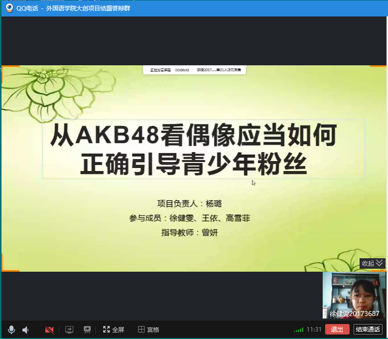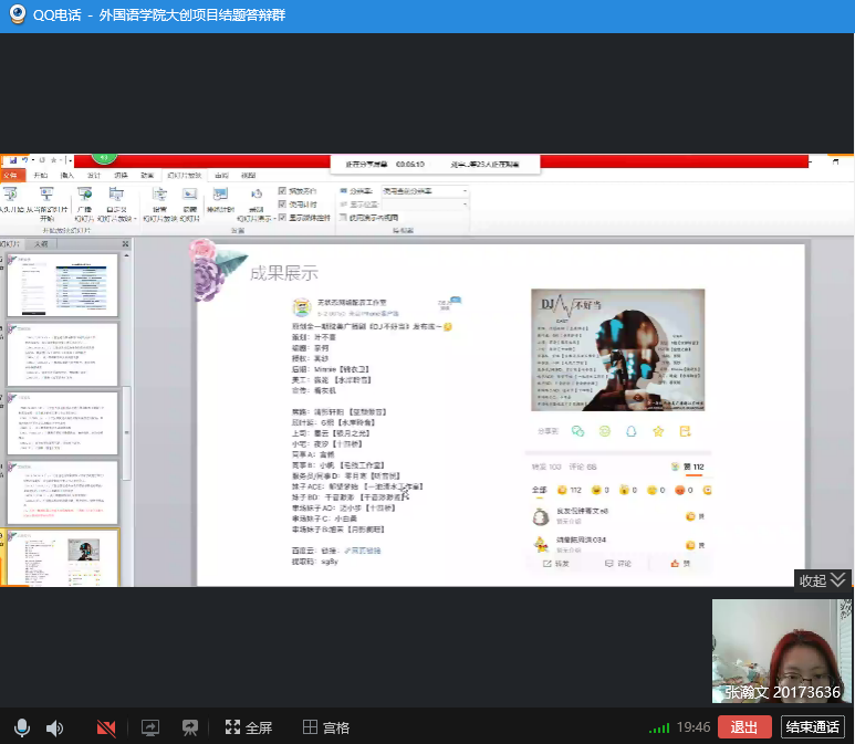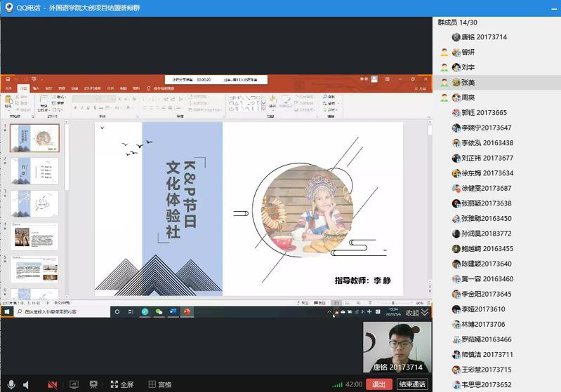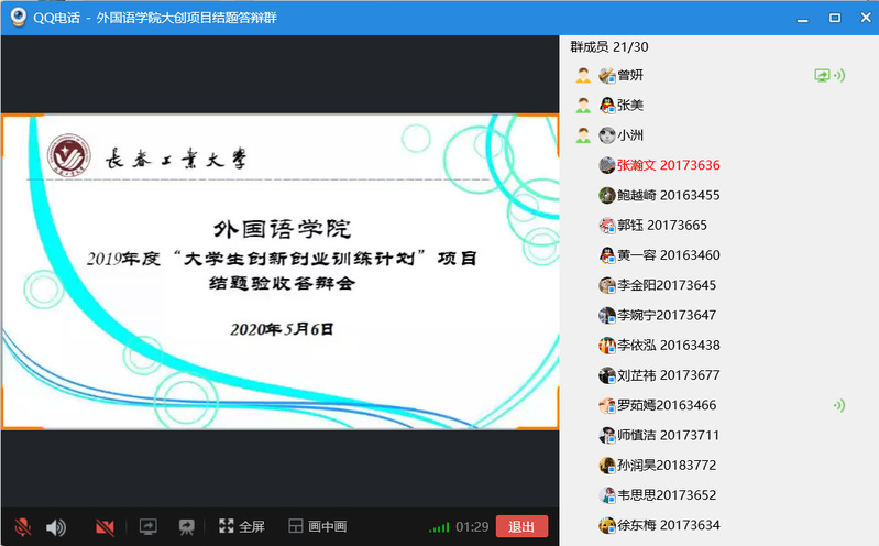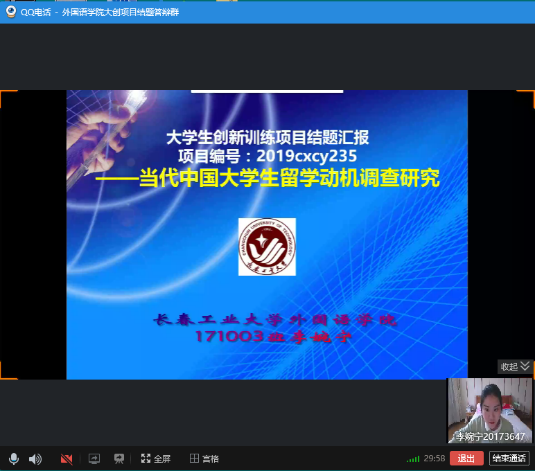 (通讯员:张美)5月6日星期三下午13:00-17:00,pa捕鱼官方网站利用QQ网络平台进行了2019年度“老员工创新创业训练计划”项目结题线上验收评审工作。英语系主任刘宇、日语系主任曾妍、俄语系主任张美担任此次结题验收答辩的专家评委。公司副经理周爽全程参加评审验收。