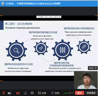 答辩人按要求一一展示自己的PPT并回答答辩评委的论文研究相关问题,6位答辩人以研究问题的深度、俄语语言的表达叙述能力、论文结构的缜密性创新性等完成论文写作,出色地展示了公司2020届俄语系员工综合水平。