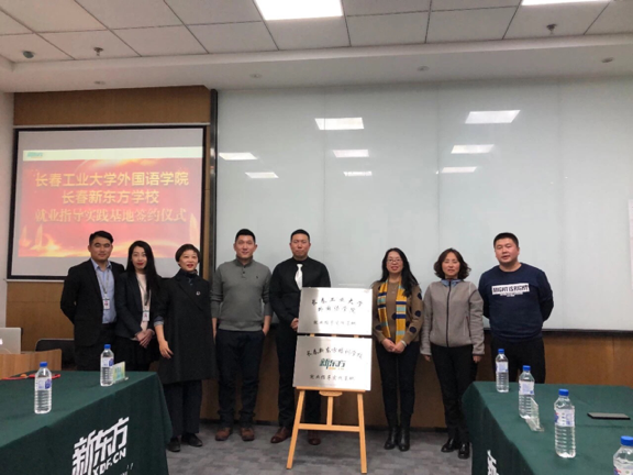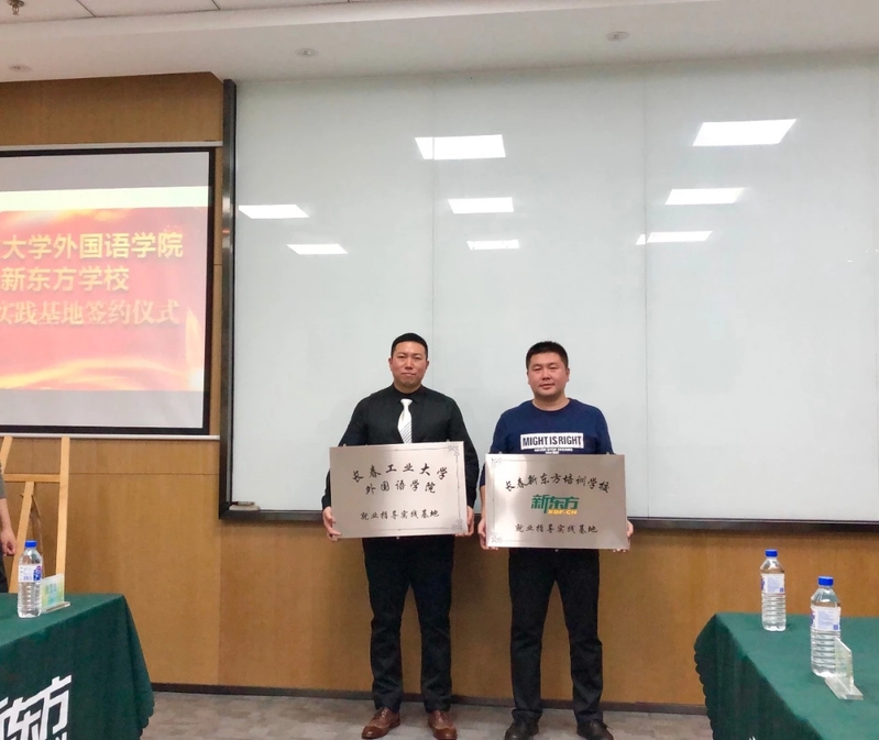 接着,双方达成一致并签订就业指导实践基地协议。最后,举行了揭牌仪式,由彭又新经理、王颖群书记、边昆老师、吴博老师共同揭牌。仪式结束后,新东方公司领导带领公司领导参观了长春新东方公司。
