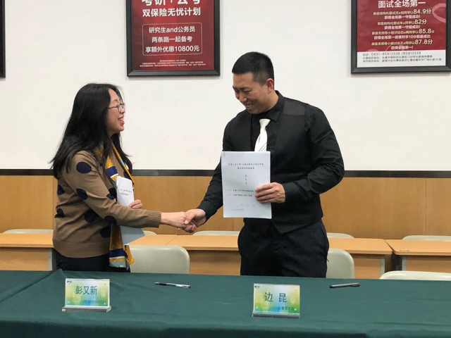 (通讯员:李雨晴)为加强公司应用型人才培养,提高员工就业能力和社会职业素养,pa捕鱼官方网站与长春新东方公司建立了就业指导实践基地,并在11月22日下午一点半于长春新东方公司举行了签约仪式。出席本次签约仪式的有公司经理彭又新、党委副书记王颖群、团委书记赵海涛、以及新东方公司人力资源总监边昆、国内考试部总监吴博等一行人。