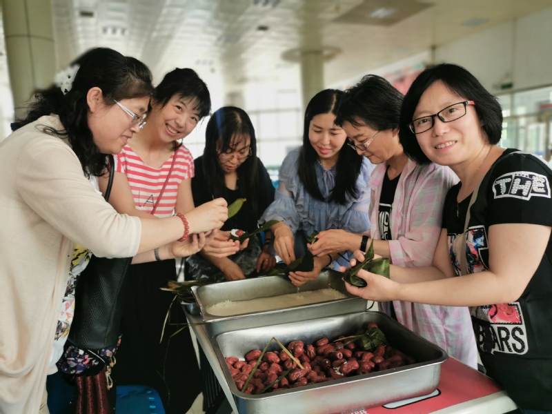 6月5日下午,pa捕鱼官方网站组织全体教职工开展了端午“粽香传真情”活动。林园校区食堂为此次活动精心准备了优质的糯米、大大的红枣、棕绳方便袋等等,师傅们手把手交,老师们认认真真学,现场充满了祥和的节日气氛。