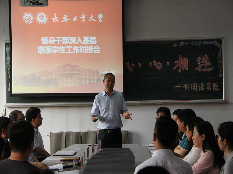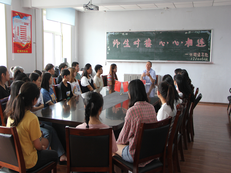 在师生对接会上,外国语公司党委书记尤海涛致词,经理彭又新宣读对接名单。