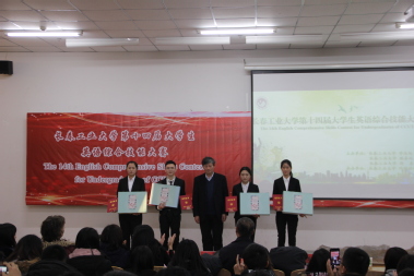 决赛分演讲、影评与问答和疯狂猜词三个环节,比赛中穿插英文歌曲演唱、乐队表演、B-box和舞蹈等节目,将比赛现场气氛推向了高潮。经过激烈角逐,计算机科学与工程公司的杨啸晨和化学工程公司的马宇昂获得个人演讲特等奖;公共管理公司团队荣获集体一等奖。大赛还评出个人演讲一等奖4名,二等奖17名,三等奖18名;集体二等奖2个,三等奖3个。与会领导和老师分别为获奖选手颁奖。