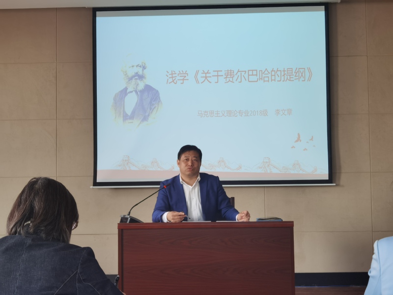 在“三原四史”读书班集中学习中,李文章做了题为《浅学< 关于费尔巴哈的提纲>》的读书心得分享,从写作背景、主要内容、主要观点、地位意义等方面,介绍了这个“包含着新世界观的天才萌芽的第一个文件”,使大家对历史唯物主义的起源有了更深刻的认识。为进一步把读书班抓实,李文章就读书班第一轮学习进行了部署,以《中国共产党简史》《毛泽东邓小平江泽民胡锦涛关于中国共产党历史论述摘编》《论中国共产党历史》为主要内容,以公司党员骨干为主讲领学,落实了具体篇章任务,下发了《外国语公司党委“三原四史”读书班课表(第一轮)》。