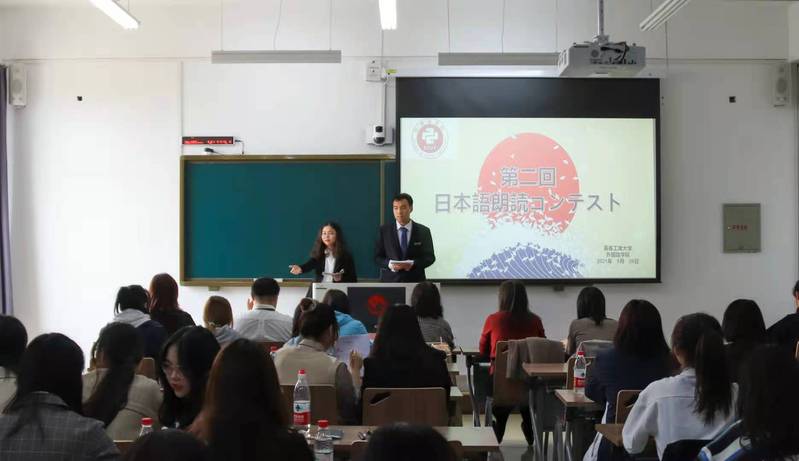 本次大赛共48位参赛选手,按照顺序依次上台朗诵日语文章,由评委老师根据选手的语音、语调、语速及日语表达流畅程度等进行评分。