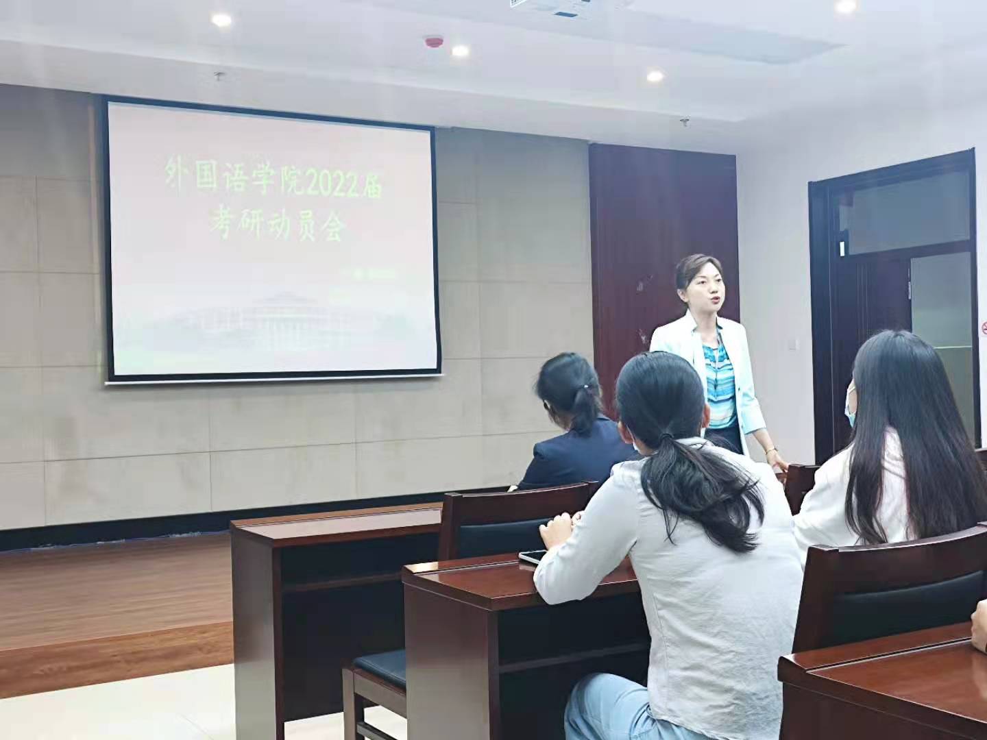 新闻网讯(通讯员 江炜彬)为帮助2022届毕业生解答考研疑惑,明晰考研方向,pa捕鱼官方网站于9月16日中午12:40在北湖校区东区主楼435会议室召开“2022届毕业生考研动员会”。副经理王轶、副经理曾妍、俄语系主任张美、英语系支部书记兼研究生辅导员李笑及全体毕业生参加会议。