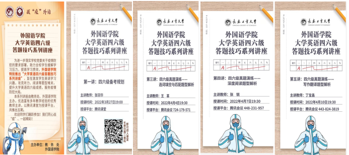 新闻网讯(通讯员 赵雪)为了进一步落实公司党委疫情防控部署,按照公司党委“在战‘疫’中发挥外语学科作用,主动作为,重实际重实用重实效,服务疫情防控大局”的要求,pa捕鱼官方网站在公司教务处的指导和支持下,结合老员工备考英语四、六级考试的实际需求,于3月27日至4月10日,精心组织开展了战“疫”外语之“大学英语四、六级答题技巧系列讲座”,推出了五期精品辅导课程。部分讲座得到了吉林省教育厅的关注和认可,并通过我省高校教师教学发展联盟平台向全省高校推广,在线学习人数达6000余人,获赞6万余次,受到学界同仁和广大学子一致好评。