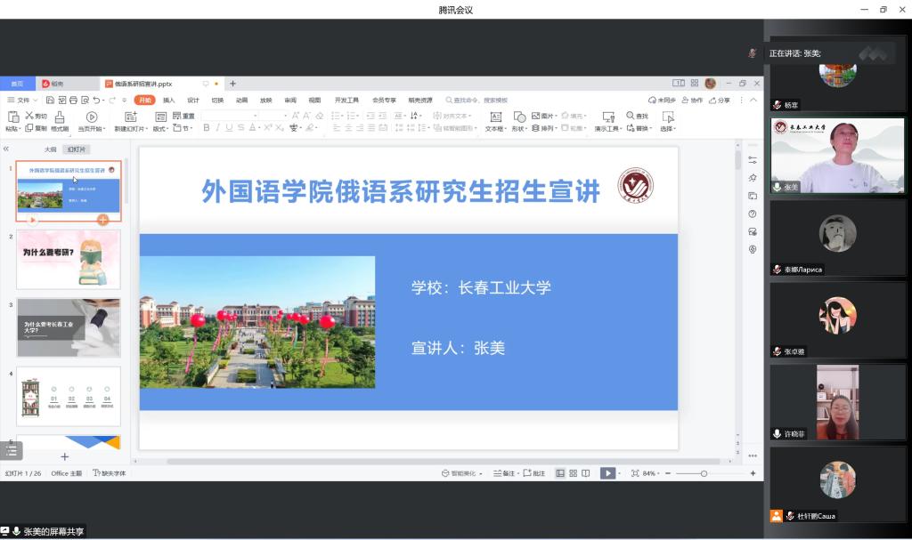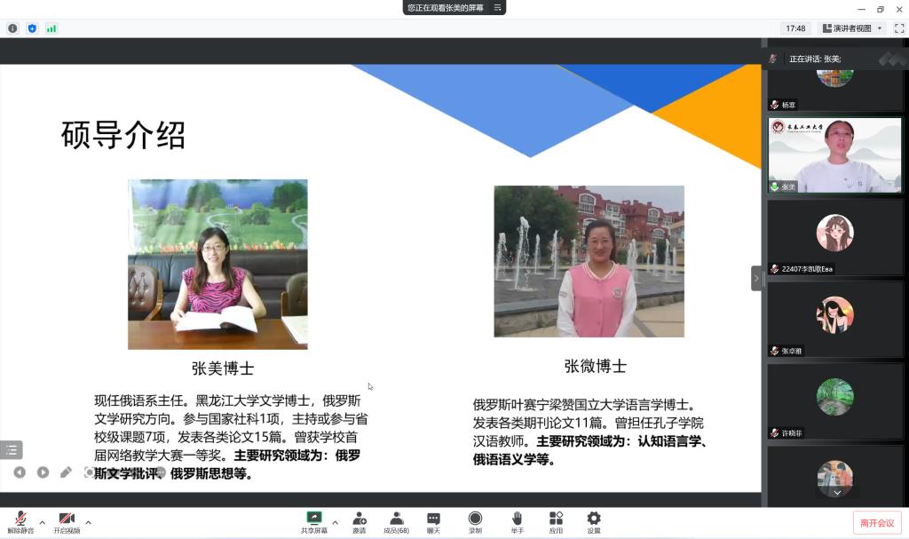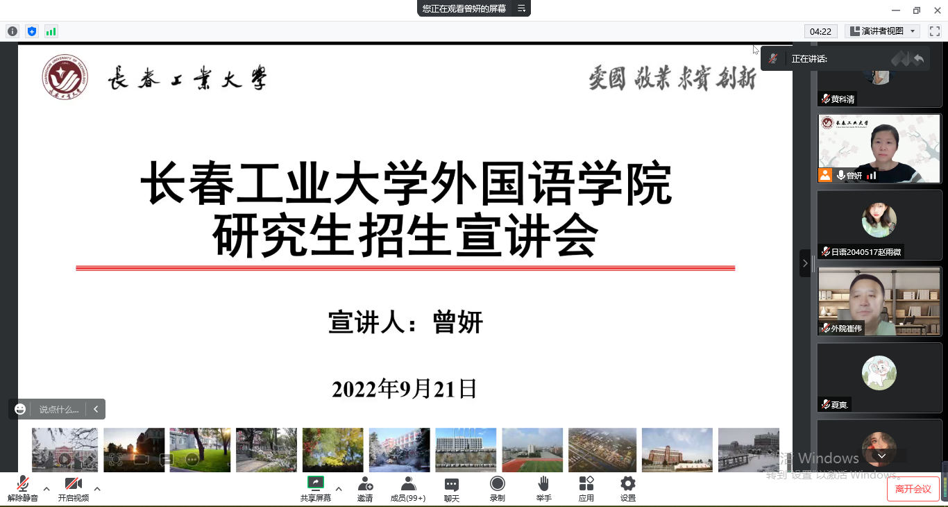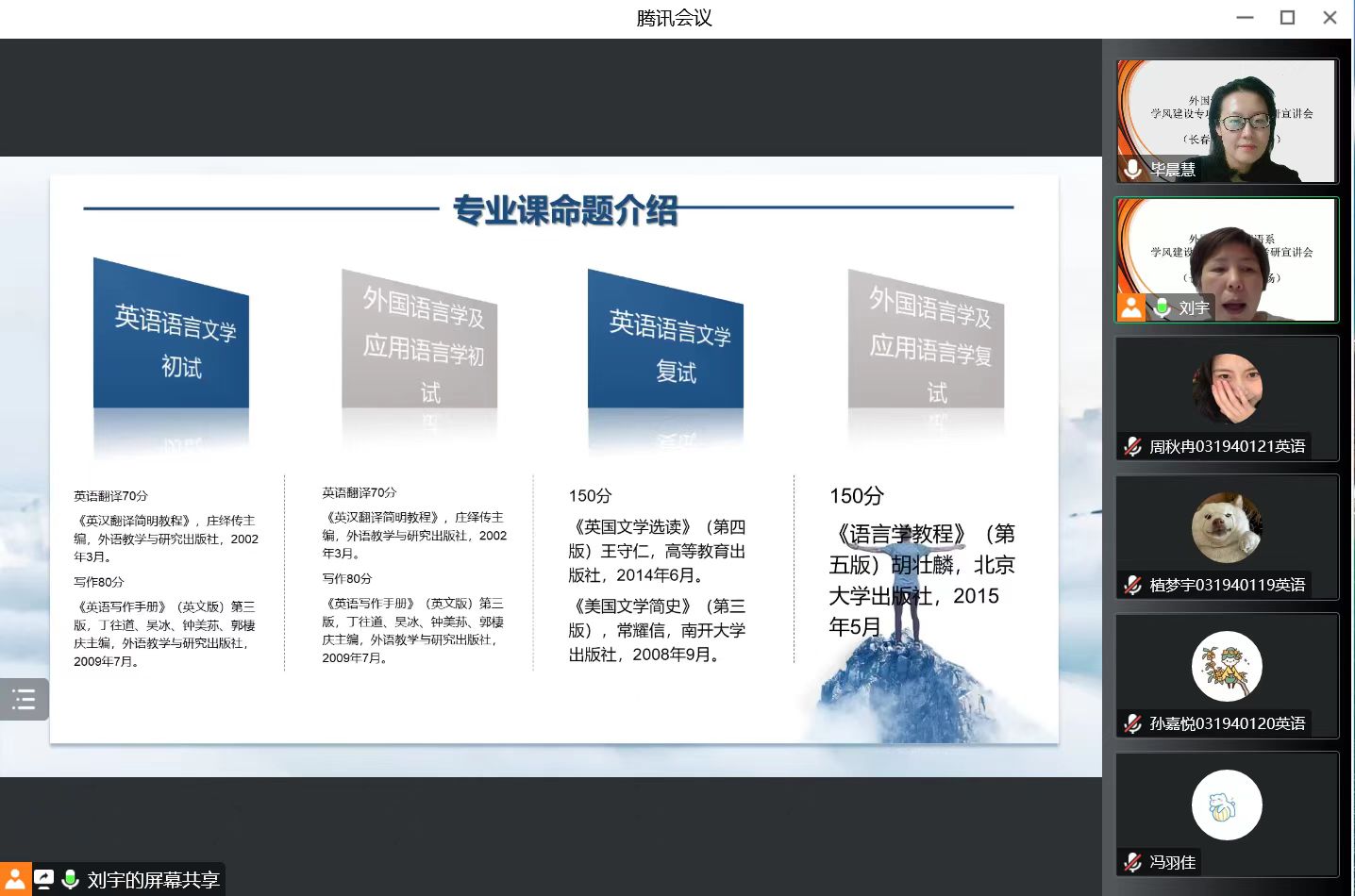 新闻网讯(通讯员 张美) 为增进员工对报考院校和专业等方面的了解,提升考研积极性,9月21日晚7点,pa捕鱼官方网站副经理曾妍、英语系主任刘宇和俄语系主任张美,通过腾讯会议平台,为长春光华公司pa捕鱼官方网站的同学们召开了线上考研宣讲会。该校pa捕鱼官方网站英语系主任毕晨慧、日语系主任崔伟和俄语系主任许晓菲分别主持三个专业的线上会议,19、20、21级员工参加了本次宣讲会。