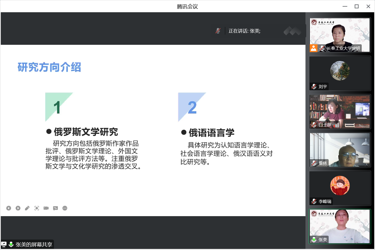 随后,张美进行了俄语语言文学方向的说明。主要从专业介绍、招生指南、题型介绍三个方面对俄语语言文学方向的发展历史、导师团队、课程体系、研究方向、就业前景、赴俄留学项目、招生计划、题型设置等相关问题进行了详细地介绍,在过程中强调了读研对于人生的意义以及报考PA捕鱼官网入口研究生的优势。她希望各位考生基于自身情况有针对性地制定复习方案,注重专业基础语言能力和语言素养地提升。