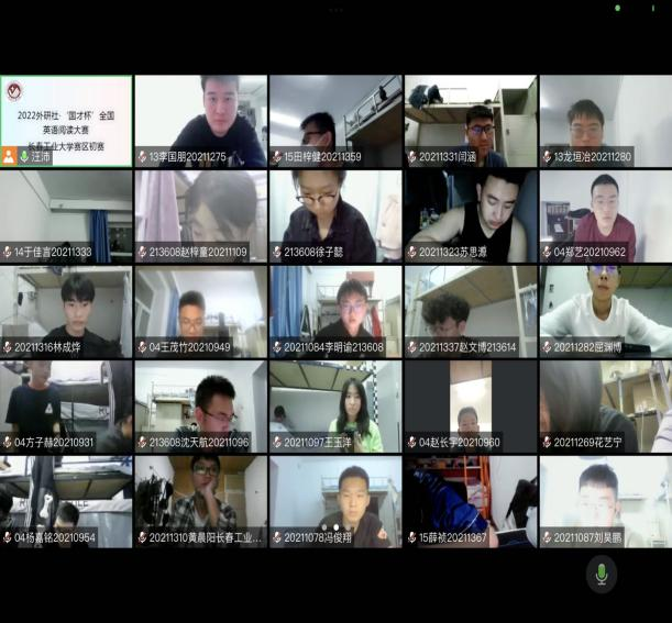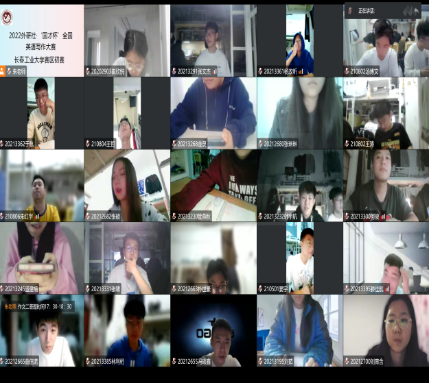 初赛采取线上考试的形式,为了保证比赛的顺利进行,9月31日公司召开会议布置考试相关工作,10月7日公共外语教学部第二教研室全体老师进行了考前培训,设置了腾讯会议号,批改网写作统一评分标准,雨课堂试卷发布等工作,同时要求参赛选手进行电脑环境测试,全程开启摄像头,为线上考试提供了前期保障。