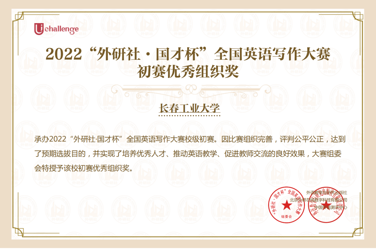 本次大赛的顺利举办获得了大赛组委会的充分肯定,授予公司为优秀组织奖。大赛充分发挥了“以赛促学、赛学相长”的作用,相信在此次比赛的带动下,同学们会在以后的学习中不断开阔视野,锤炼英语技能,为成为新时代复合型优秀人才而不懈努力。