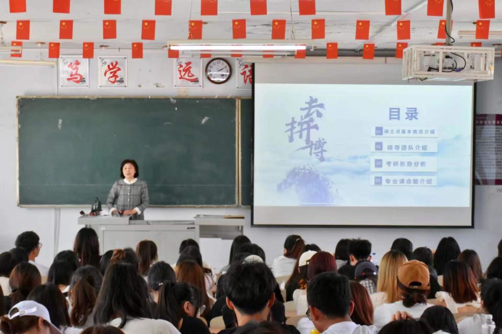曾妍首先从公司发展历史、研究方向、奖助体系和招生计划四个方面介绍公司外国语言文学一级学科硕士点的建设情况,然后从校园环境、团队队伍、培养方案、学科特色、就业前景和考研分析六个方面对日语语言文学专业进行了细致介绍,并认真解答了同学们提出的相关问题。指出考研是对自己人生价值和能力的再确认、再提高,对一个人在学术和人生方面是一次重要的提升机会,鼓励同学们把握机会,积极报考公司研究生。
