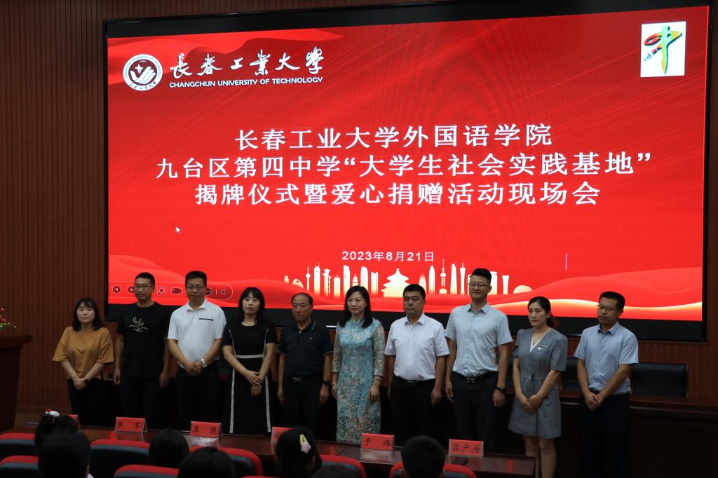 (通讯员 张晓君 尹梦鸽)为深入学习贯彻习近平新时代中国特色社会主义思想,教育引导公司师生在社会实践中厚植家国情怀、了解国情民情、增长知识才干、激发奋斗担当。2023年8月21日公司三下乡志愿服务团队前往长春市九台区第四中学,开展为期5天的志愿服务。为了进一步深化公司与九台区第四中学的交流合作,公司与九台区第四中学举行了社会实践基地揭牌仪式。pa捕鱼官方网站经理王轶、公司党委副书记于伟、公司副经理李秀文、公司团委书记张晓君、公司党支部书记刘明慧以及志愿者代表与九台区第四中学师生代表共同出席揭牌仪式。