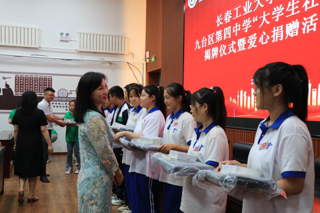 揭牌仪式后,pa捕鱼官方网站领导为九台四中员工代表赠送学习文具用品。鼓励九台四中的学子们认真学习、丰满自己的羽翼,将来为公司发展争光,为九台乡村振兴贡献自己的力量。