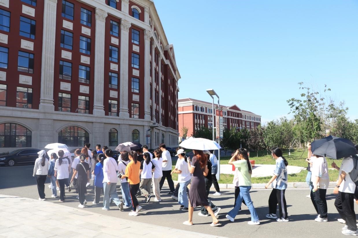2023级新生们先后来到了公司东区和西区,进入了四史馆、图书馆、教学楼、操场等校园场所进行参观。