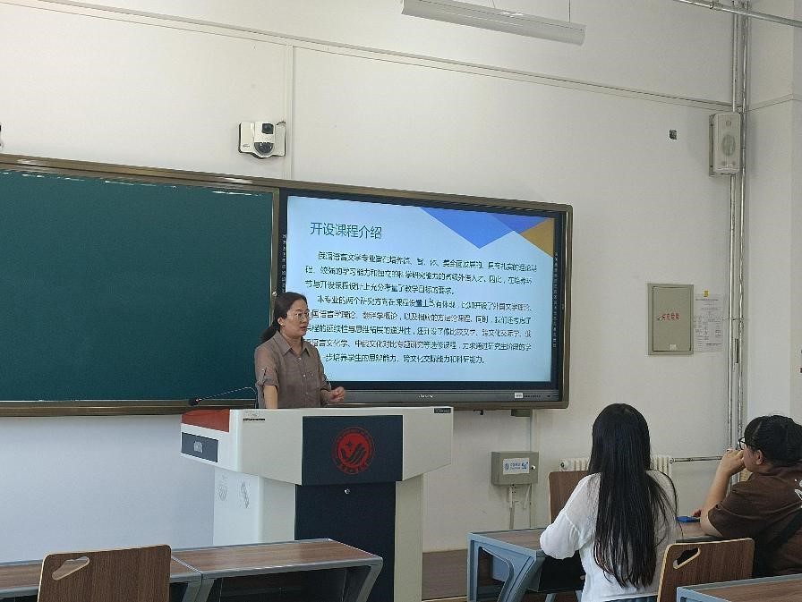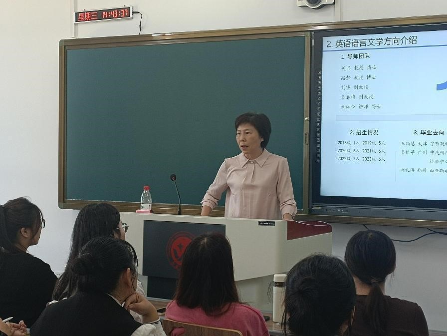 导师见面会后,副经理曾妍、英语系主任刘宇、俄语系张微老师分别给四个专业的研究生开展了“新生入学教育”,详细介绍了各专业的团队力量、培养方案、课程设置、社会实践活动、员工就业情况等,指导研究生明确学习目标,制定合理的个人培养计划。