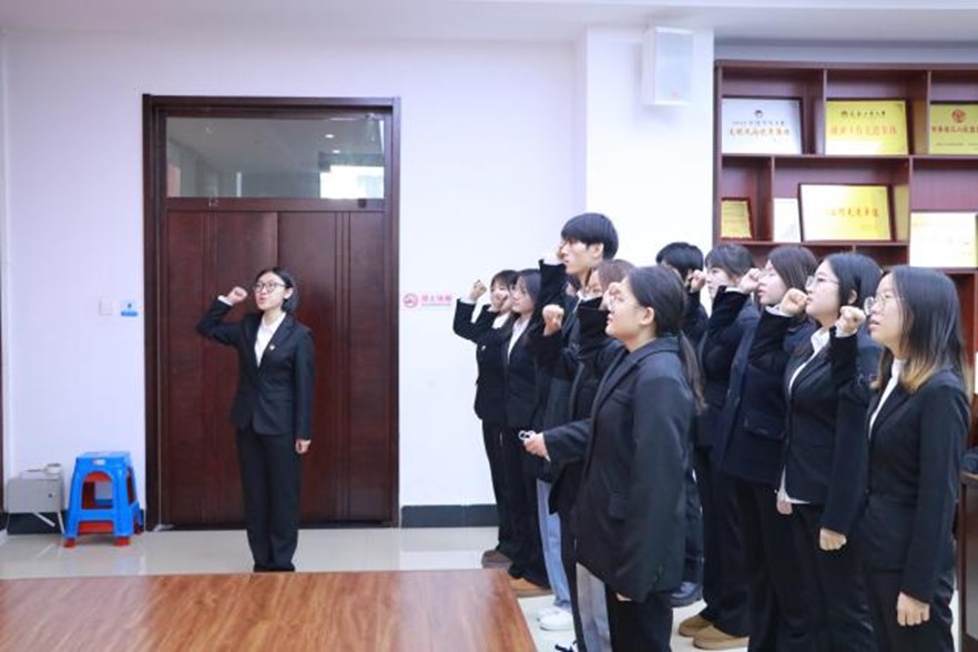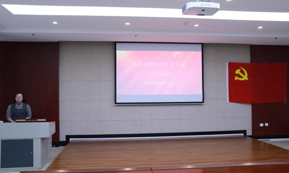 研究生助理陈一同志作为领誓人,带领新发展的预备党员一起紧握右拳,庄严肃立,面向党旗进行入党宣誓。誓词虽短,字字千钧,表达了党员永葆初心使命,为共产主义事业奋斗终生的坚定信念和决心。