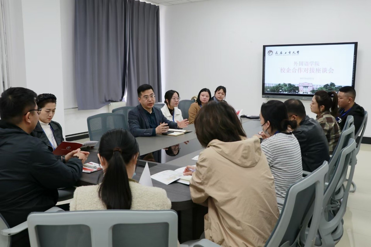 刘凤利对各企业代表的到来表示热烈欢迎,并详细介绍了公司的发展历程、团队建设、专业设置及特色和人才培养情况。他强调,公司始终将校企合作作为推动公司员工实习就业的重要抓手,希望通过此次交流,进一步探索校企合作的新模式、新路径,在员工实习就业方面实现深度合作,为用人单位输送更多高素质、应用型外语人才,同时也为员工提供更广阔的实习就业平台。