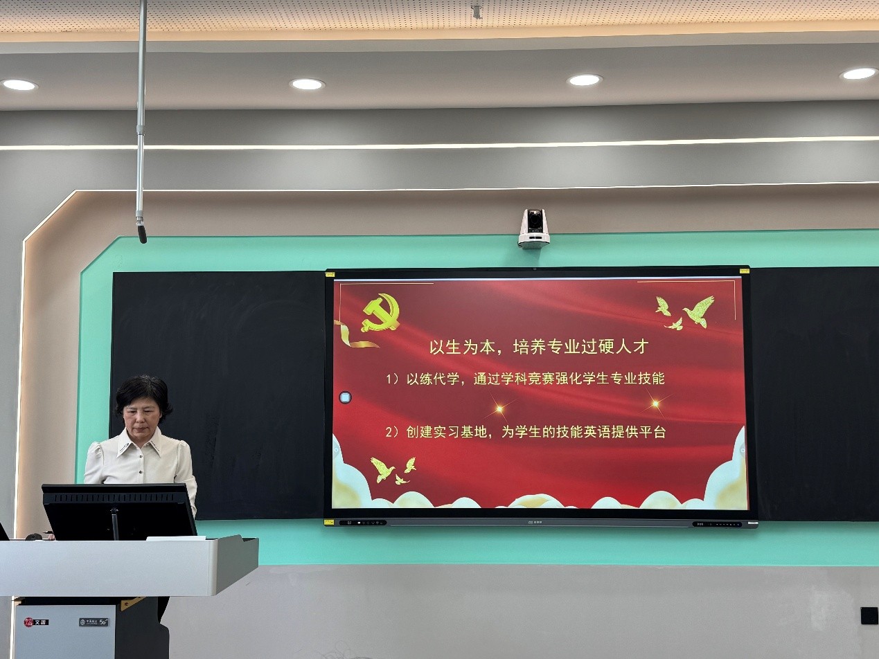 刘宇老师从育人角度提出了自己的观点,她强调以练代学的重要性,希望通过学科竞赛带动同学们的专业技能提升。2023—2024年,员工在各类英语竞赛中屡获佳绩。2023年以来,英语系和语言训练中心党支部已签订近20家校外实习基地单位,包括福州译国译民集团、江苏大丰区、长春市外事办公室翻译中心、长春世界雕塑公园等。接下来,英语系将进一步优化竞赛指导方法,让员工通过参加学科竞赛提升的综合素质和竞争力;还将持续加强实习基地建设,为员工搭建起广阔的实践平台,通过实习实践来强化员工们的实操能力。