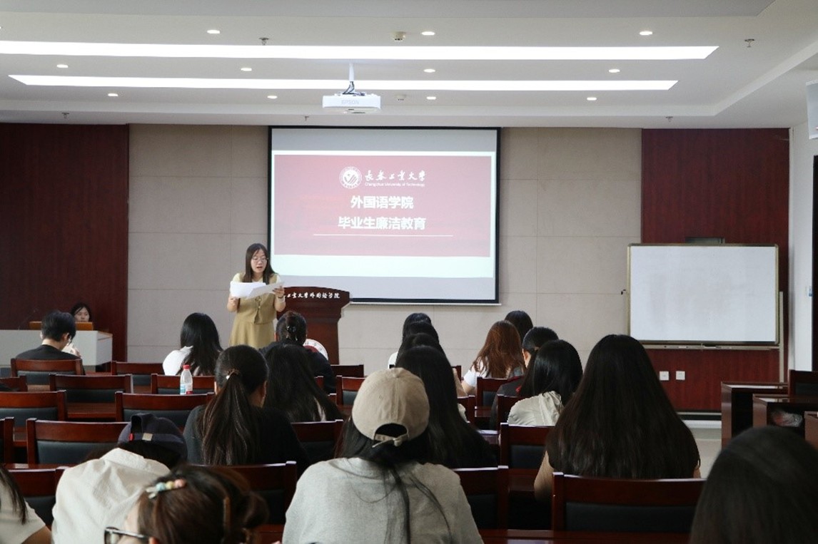 谭密老师结合视频内容,以案说纪、以案说责,警示毕业生要常受思想洗礼,未来要自觉把好“政治关、权力关、交往关、生活关、亲情关”,扣好“理想、规矩、担当、终身”四颗扣子;要树牢理想信念根基,守住拒腐防变底线,树立和践行正确政绩观,始终做政治上的明白人;要做到“头脑要清醒,手脚要干净,肩膀要过硬”,更好担负起实现中华民族伟大复兴的时代重任。