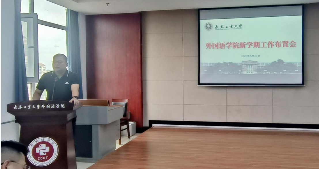 张子宇代表公司党政领导班子向全体教职员工致以新学期问候,强调外语教育工作者应坚守育人初心,在保障身心健康的同时,以积极饱满的状态投入教学工作,并对本次会议议程作了简要说明。