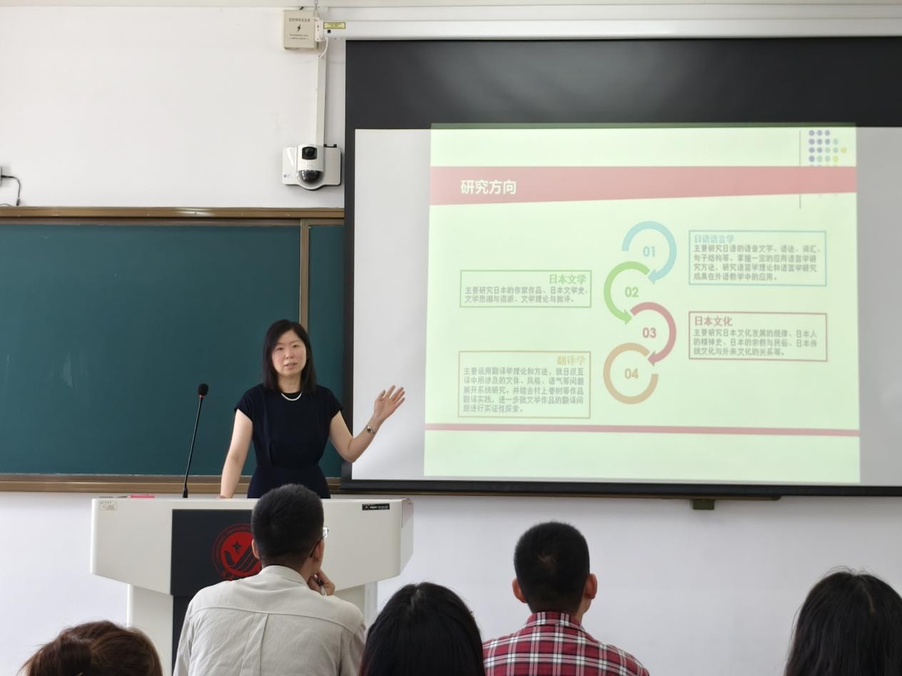 导师见面会后,公司分专业开展了新生入学教育。曾妍和英语系主任刘宇分别就各专业的培养方案、课程设置、奖助体系、学术活动、社会实践及就业前景等方面进行了深入讲解,为同学们答疑解惑,帮助大家尽快适应研究生学习生活。