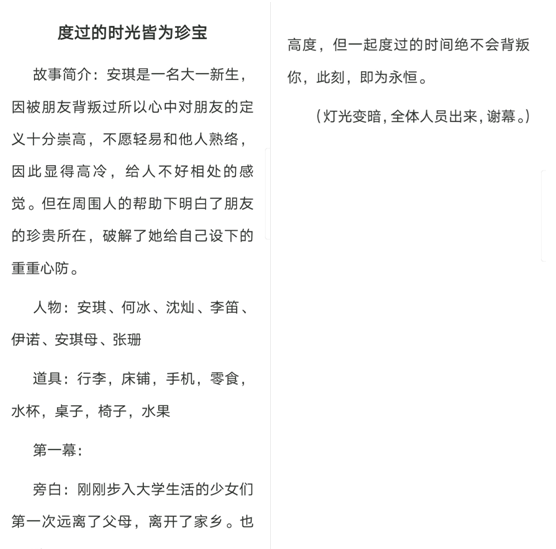 新闻网讯(通讯员 于士纪)2020年5月19日,pa捕鱼官方网站“学姐制”朋辈心理辅导站组织全体同学参加了校心理中心组织的心理剧大赛,各班认真准备,团结写作,用最饱满的热情创作出了 181001班题目《重生》、181004班题目《头顶阳光心向太阳》、191001班题目《800米的距离》、191004班题目《渴望》、191005班题目《度过的时光皆为珍宝》等优秀的剧本。