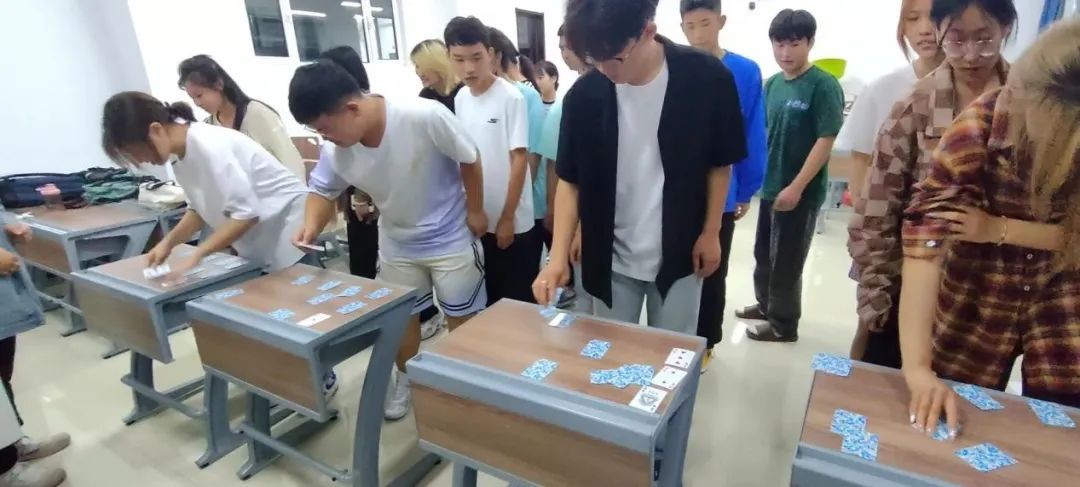 一个个心理小游戏,大家一一体验,参与其中。小组游戏猜歌词、背后写字、卡牌游戏、进化论游戏,既考验记忆力与默契程度,也考验沟通交流与团队合作能力。活动过程中各小组齐心协力、奋力拼搏、共解难题,活动现场欢笑声、加油声、鼓掌声此起彼伏,每一次挑战的成功,都把大家的心拉的更近。
