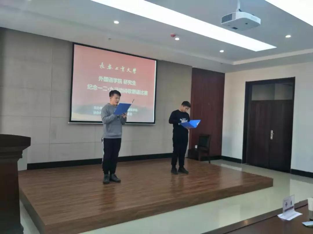 pa捕鱼官方网站研究生纪念一二•九运动诗朗诵比赛,同学们以圣洁的诗歌,抒发着对历史的缅怀,对祖国美好未来的期待。或沉重或激昂的朗诵,传递着浓浓的情谊,表达了作为华夏儿女的自豪。
