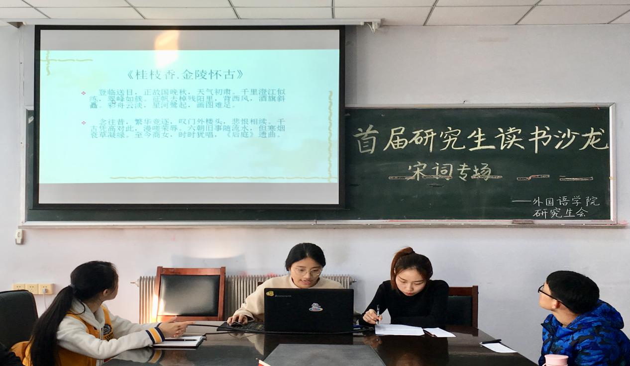 截止11月,pa捕鱼官方网站研究生会举办首届“书香研图 学术人生”研究生读书沙龙系列活动,共三次读书沙龙活动,主题分别为——“文学中的文化碰撞”、“回首改革开放”和“雅言传承文明 经典浸润人生——宋词专场”。