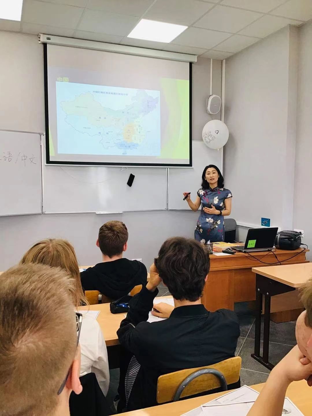 英语教师卢威威,在波兰比亚维斯托克理工大学,作为孔子公司国际中文教师志愿者教授汉语。